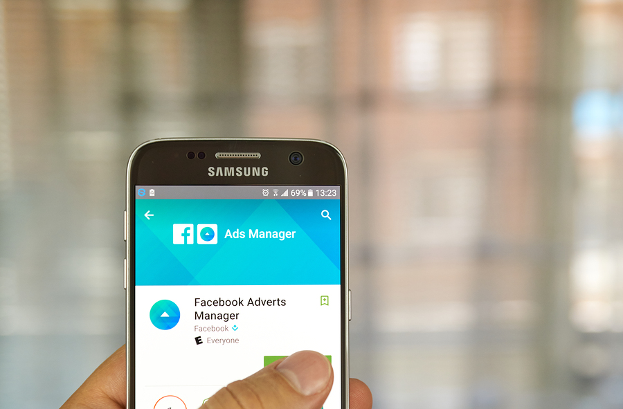 MONTREAL CANADA – JUNE 24 2016 : Facebook Ads Manager on Samsung S7 screen. Ads Manager is built to help Facebook advertisers manage and create ads from mobile devices.